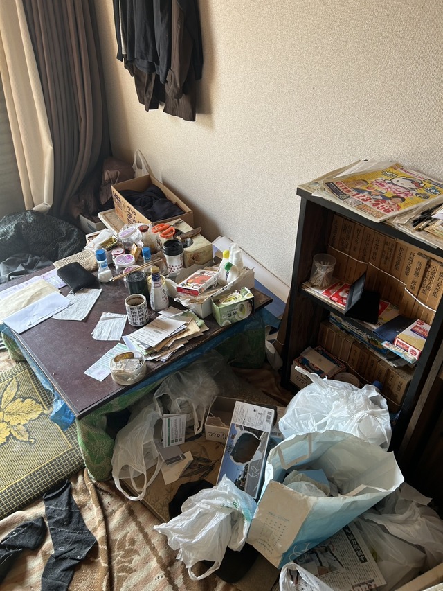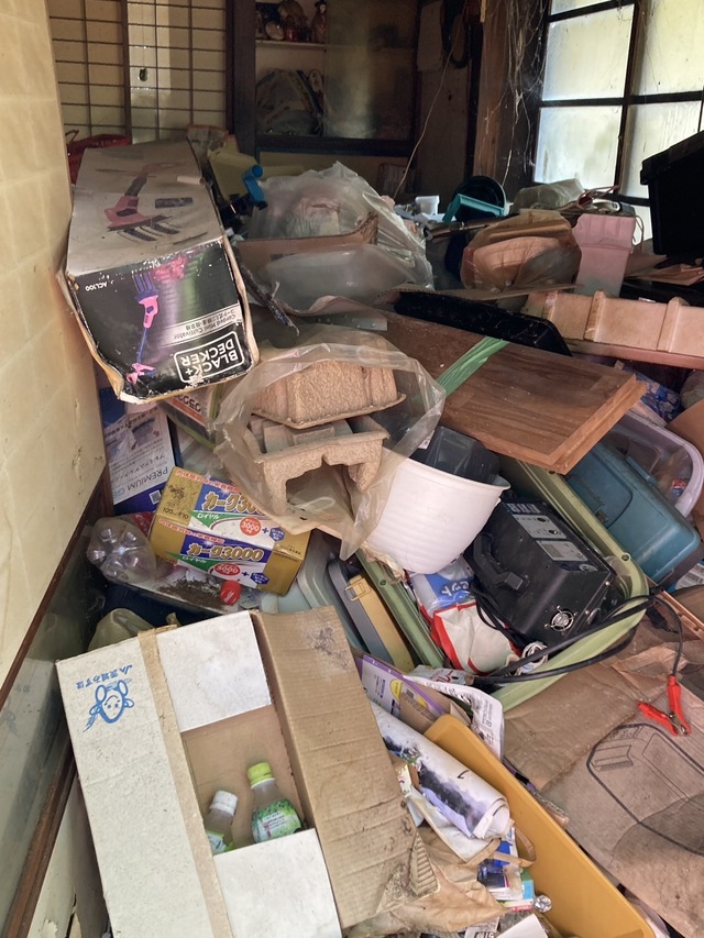 茨城県北地区の一軒家のゴミ屋敷清掃になります。御依頼主様よりヒアリング時に貴重品や保管品の丁寧な仕分けの御希望をおうかがいしておりました。お写真で見てもおわかりになるように、とにかく物量の多い案件でした。まずは安全に作業する為の動線の確保を行いました。その後、不用品、貴重品、保管品と丁寧に仕分けをさせていただきお片付けさせていただきました。簡易清掃ののち作業終了となりました。御依頼主様にもお引渡し時に大変喜んでいただけました。このように、ご自身で整理清掃するにしても、どこから手をつけて良いかわからなかったり、また処分方法がわからない等でご自身でとなると大変な労力や時間がかかり困難でお困りな方もいらっしゃるかと思います。弊社は丁寧なヒアリング、丁寧かつ迅速な作業をモットーとしております。ゴミ屋敷清掃でのお困りごと等がございましたら、ぜひご相談くださいませ。御見積やご相談は無料となっておりますので、ご安心ください。